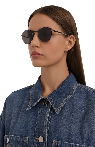 Для изготовления черных солнцезащитных очков с тонкими ободами и золотистой вставкой на мосту использовали ультралегкий и при этом необыкновенно прочный титан. Узкие дужки с системой регулировки длины дополнили заушниками из глянцевого ацетата. Аксессуар с серыми антибликовыми линзами, на 100% защищающими от UVA/UVB лучей, подходят как женщине, так и мужчине.