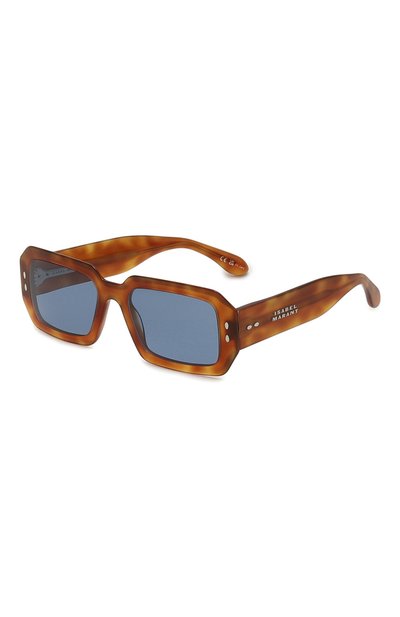 Солнцезащитные очки с логотипом на широких дужках будто прибыли из 1960-х. С тем десятилетием ассоциируется крупная прямоугольная оправа из легкого глянцевого ацетата с черепаховым мотивом. Прочный гибкий материал быстро перенимает тепло кожи, поэтому аксессуар почти не ощущается на лице. Темно-синие затемненные линзы на 100% защищают глаза от ультрафиолетовых лучей.