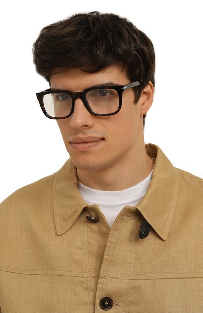 Коричневую оправу с черепаховым мотивом декорировали символичным ромбом и монограммой DB, подчеркивающими принадлежность бренду. Д ля изготовления модели использовали легкий прочный ацетат, хорошо перенимающий тепло кожи. Материал, выдерживающий падения с небольшой высоты, тщательно отполировали вручную.