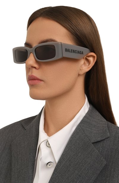 Для изготовления серых солнцезащитных очков, подходящих и мужчине, и женщине, использовали легкий ацетат, отполированный до глянцевого блеска. Вытянутые рамки, декорированных сбоку логотипом бренда, поддержали широкими плоскими дужками. Линзы в тон блокируют ультрафиолетовые лучи и не снижают контрастность изображения.