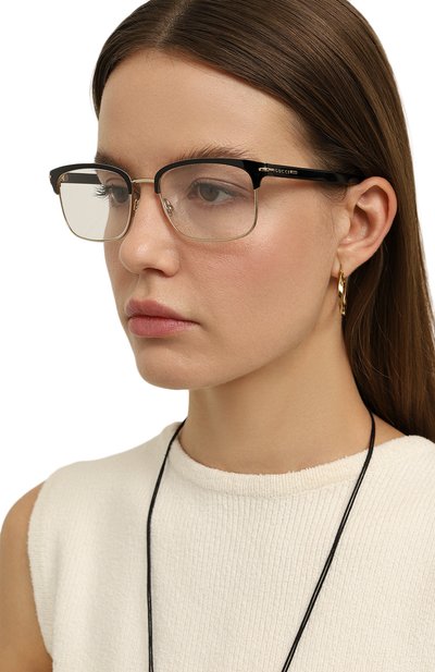 Лаконичность черной оправы нарушает лишь золотистая монограмма GG на узких дужках. Для изготовления аксессуара использовали легкий прочный ацетат, отшлифованный до глянцевого блеска. Материал всегда остается теплым, поэтому в модели будет комфортно в любую погоду.