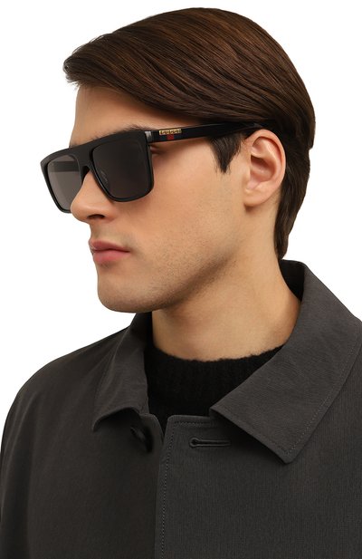 Создавая эти очки, команда марки поместила в центр внимания дужки. Их расчертили красной и зеленой полоской, придав сходство с лентой Web, и поддержали фирменную символику небольшим металлизированным логотипом бренда. Оправу из черного ацетата и прямоугольные линзы с надежной защитой от ультрафиолета оставили предельно лаконичными.