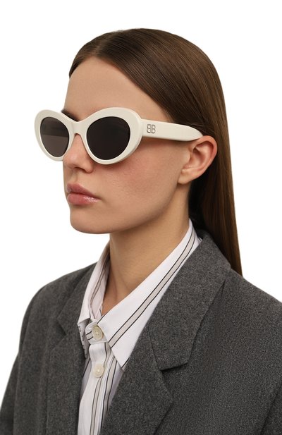 Широкие рамки придают овальным солнцезащитным очкам сходство с аксессуарами в стиле ретро. За комфорт отвечает отполированный прочный ацетат, который почти ничего не весит и не нагревается на солнце. Изделие с фигурными дужками, украшенными золотистой гравировкой в виде логотипа, дополнили черными линзами, полностью блокирующими ультрафиолет.