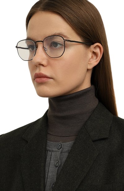 Лаконичная оправа классической формы «панто» подойдет и женщинам, и мужчинам и органично впишется в образ любой степени формальности. Для изготовления аксессуара использовали нержавеющую сталь с матовым черным покрытием, а подвижные носоупоры и заушники выполнили из прозрачного гипоаллергенного силикона. Узкие дужки, закрепленные запатентованными спиральными шарнирами, раздвигаются под широкими углами и обеспечивают максимально комфортную посадку.