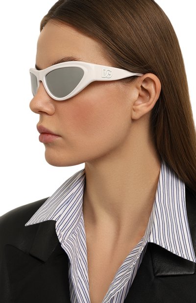 Узкий овальный силуэт очков из коллекции Re-Edition подсмотрен у аксессуаров 1990-х и 2000-х. Для изготовления оправы использовали белый ацетат, который эффектно оттеняет темно-серые линзы со 100-процентной защитой от ультрафиолета. На дужках – небольшой контрастный логотип бренда.