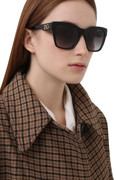 Солнцезащитные очки формы butterfly вошли в коллекцию DG Crossed. Снаружи оправу из ацетата украсили леопардовым узором, а внутри ее оставили однотонной. Аксессуар с монограммой DG на дужках дополнили градиентными линзами категории затемнения три.