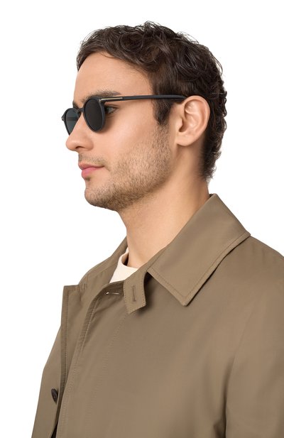 Классические прямоугольные очки с мягкими линиями отлично впишутся в повседневные образы. Широкие дужки наполовину изготовлены из черного, а наполовину — из полупрозрачного ацетата. Границу проводит узкая металлическая панель, которая перекликается с фирменными шарнирами в виде литер Т и небольшими брендированными пластинами на заушниках. Поляризованные линзы надежно защищают от солнца и бликов.