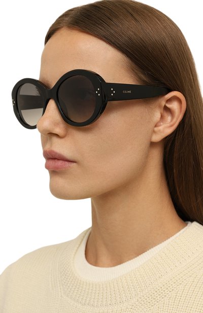 Широкие ободы прямоугольных солнцезащитных очков придают им сходство с моделями в стиле ретро. Для изготовления аксессуара использовали легкий ацетат, отполированный до блеска. Дужки украсили золотистой р ельефной накладкой в виде логотипа. Серые градиентные линзы защищают глаза от ультрафиолета, не искажая цветопередачу.