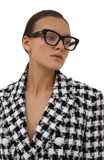 Оправу формы cat eye выполнили из черепахового ацетата. Левую дужку аксессуара, подходящего под образы разной степени формальности, украсили эмблемой BB.