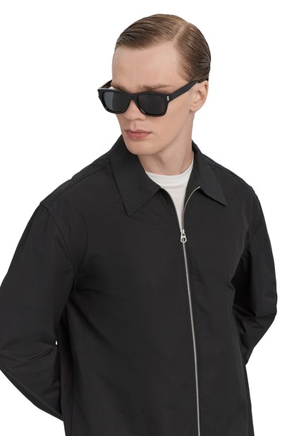 Лаконичный дизайн и универсальный черный цвет делают эти солнцезащитные очки подходящими и женщине, и мужчине. Для изготовления аксессуара с квадратными ободами использовали легкий ацетат, отшлифованный до глянцевого блеска. Модель с серыми линзами, полностью блокирующими ультрафиолет, декорировали серебристой брендированной вставкой на широких дужках.
