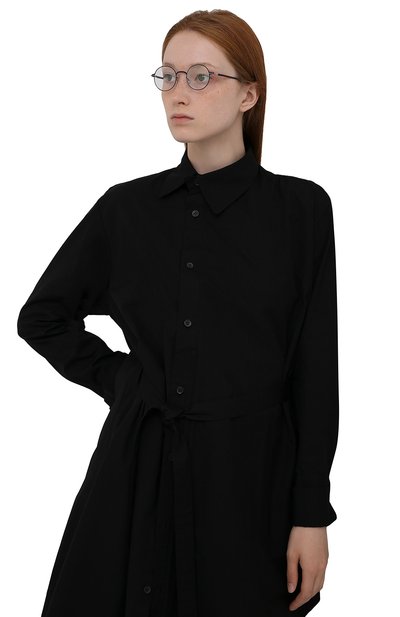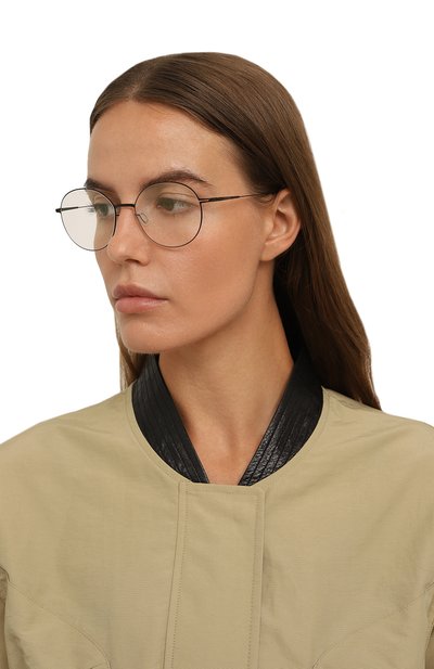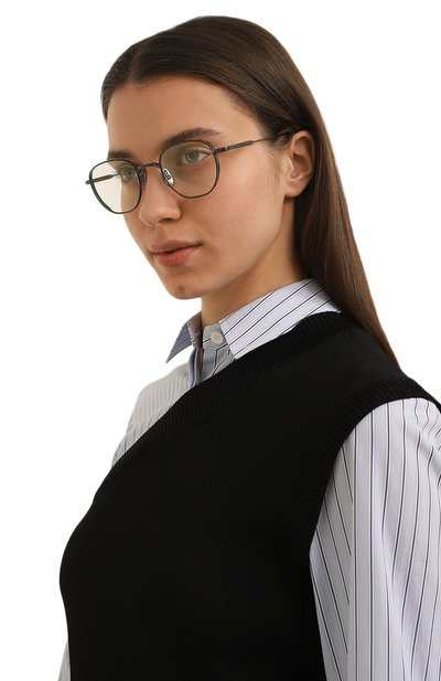 Оправа с рельефной шестиугольной рамкой и регулируемыми металлическими носоупорами дополнена узкими дужками из гладкого пятнистого ацетата. Собранный вручную аксессуар впишется как в женский, так и в мужской образ.