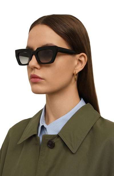 Солнцезащитные очки с градиентными линзами полностью блокируют ультрафиолетовые лучи. Прямоугольная оправа с рельефом на верхней части рамки изготовлена вручную из прочного ацетата.