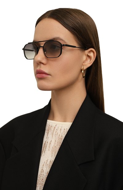 Безободковые очки изготовили из легкого и гибкого металла. Узкие дужки с рельефным узором переходят в заушники из прозрачного ацетата. Восьмиугольные линзы из устойчивого к царапинам поликарбоната обеспечивают третью степень защиты от ультрафиолета, что делает модель подходящей для отдыха на море.