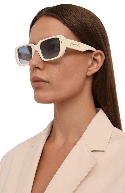 Предельно лаконичные солнцезащитные очки почти не ощущаются на лице, поэтому не вызовут усталость при длительном использовании. Светло-зеленые линзы из устойчивого к царапинам поликарбоната защитят глаза от УФ-лучей не хуже классических темных. Аксессуар из легкого прочного ацетата украсили логотипом, выгравированным на дужках.