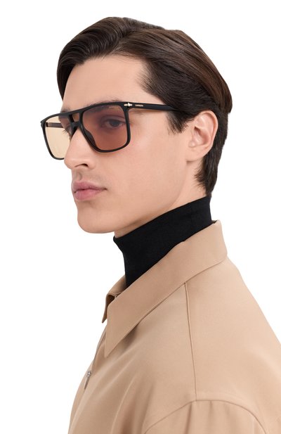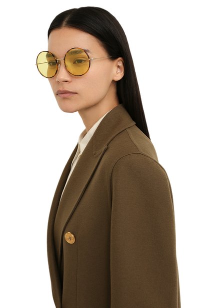 Утонченная оправа солнцезащитных очков получилась особенно прочной и почти невесомой за счет отполированного ультралегкого титана. Цилиндрические дужки модели с регулируемыми носоупорами дополнили заушниками из гладкого ацетата. За блокировку УФ-излучения отвечают желтые полупрозрачные линзы из поликарбоната.