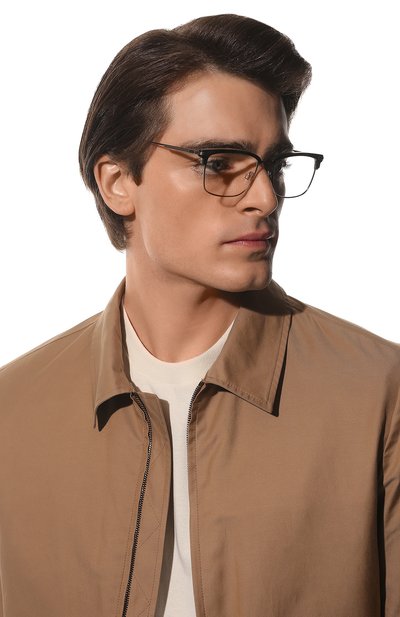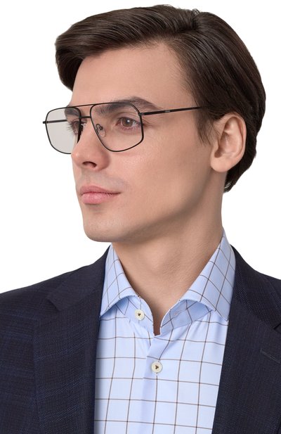 Тонкая черная оправа с синим градиентом на квадратных небольших рамках подойдет для образов любой степени формальности. Для изготовления аксессуара с неподвижными носоупорами использовали легкий инновационный материал SPX®+, который остается теплым на ощупь и в жару, и в холодную погоду и не боится деформаций и падений. Узкие титановые дужки с долговечным бесшарнирным креплением раздвигаются под широкими углами, обеспечивая максимально комфортную посадку без давления на виски.