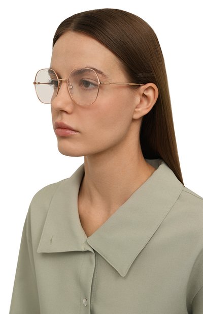 Утонченную оправу изг отовили из прочного металла с гальваническим покрытием цвета золота. Узкие дужки с выгравированной эмблемой дополнили заушниками из черепахового ацетата, быстро перенимающего тепло кожи. Аксессуар с подвижными носоупорами почти ничего не весит и не загораживает обзор, поэтому не вызовет усталость при длительном использовании.