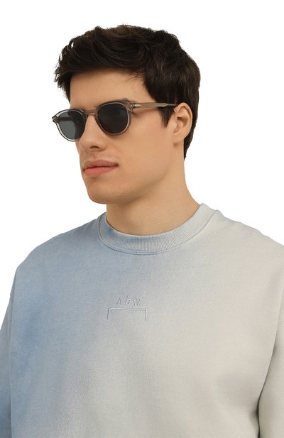 Прозрачную дымчатую оправу этих небольших очков выполнили из легкого прочного ацетата, отполированного до идеальной гладкости. Широкие дужки укрепили металлическими сердечниками и декорировали фирменными вставками в виде крыльев. Серые градиентные линзы обеспечивают 100% защиты от ультрафиолета, не искажая изображение.