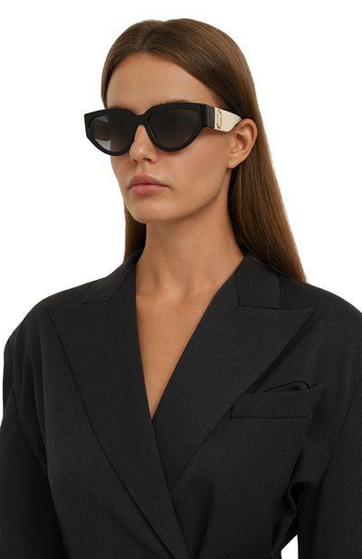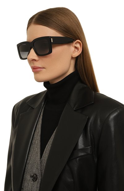 Создавая солнцезащитные очки, сыграли на контрасте черных квадратных ободов и белых широких дужек. Для изготовления аксессуара с серыми градиентными линзами, не снижающими контрастность изображений, использовали легкий глянцевый ацетат. Модель декорировали крупной надписью Icon и миниатюрной накладкой в виде кленового листа.