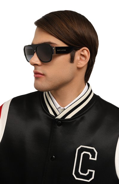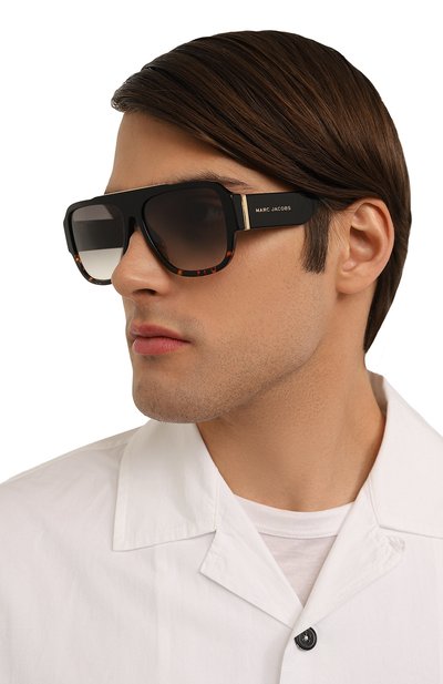 Для изготовления черной оправы больших квадратных очков со сплошным мостом использовали легкий прочный ацетат, для отделки – блестящий металл. Широкие армированные дужки декорировали с внутренней стороны брендированным паттерном, с внешней – золотистым логотипом. Градиентные серые линзы обеспечивают 100% защиты от ультрафиолетовых лучей.
