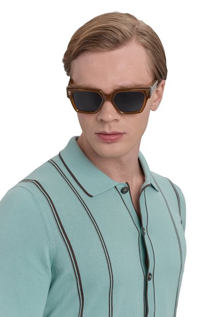 Строгая форма солнцезащитных очков Pyxis напоминает о классических аксессуарах из фильмов 1950-х. Современное звучание дизайну придают четкие рубленые углы. Модель словно парит в воздухе: иллюзию создает почти невидима я оправа из прозрачного японского ацетата, который не скрывает фирменные титановые сердечники в дужках. Темно-синие линзы эффективно блокируют ультрафиолет.