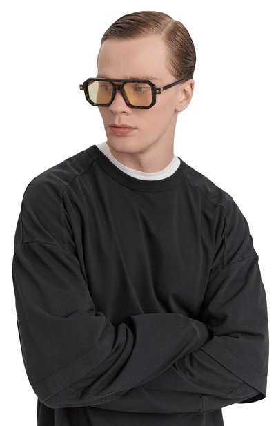 Тонкую оправу солнцезащитных очков, выпущенных лимитированным тиражом 555 экземпляров, выполнили вручную из титана. Аксессуар дополнен дужками с запатентованной системой вращения, защищающей антибликовые линзы ZEISS от царапин.