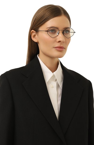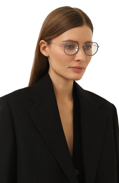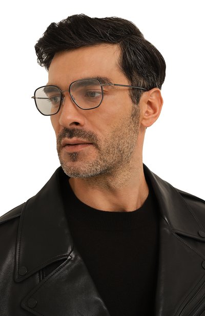 Утонченную оправу квадратной формы, не загораживающую обзор, изготовили из легкой нержавеющей стали с рутениевым покрытием. Переднюю часть ободов окрасили синей эмалью, а дужки дополнили оранжевыми заушниками из прочного ацетата с рифленой отделкой. Аксессуар с подвижными носоупорами почти ничего не весит и не вызывает усталость при длительном использовании.