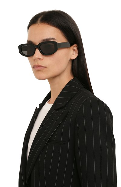 Универсальный черный цвет и лаконичный дизайн адаптируют эти солнцезащитные очки и для мужчины, и для женщины. Для изготовления аксессуара с квадратными ободами и широкими фигурными дужками использовали легкий ацетат с глянцевым блеском. Сильно затемненные дымчатые линзы не снижают контрастность изображения и защищают от ультрафиолета.