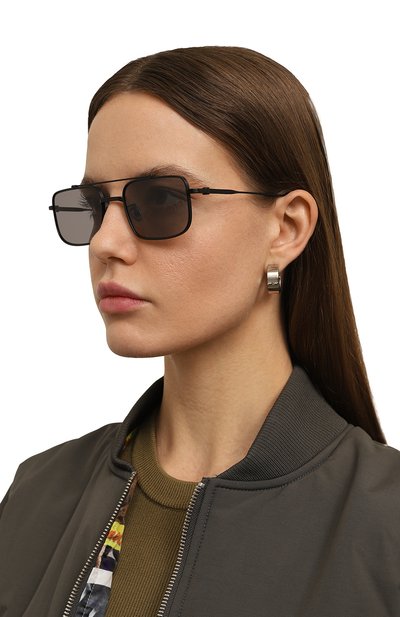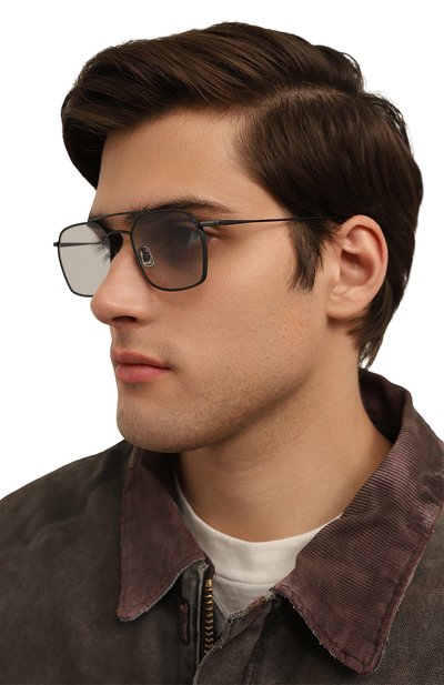 Черную оправу этих солнцезащитных очков CLCC3 формы «авиатор» выполнили из прочного титана, который сделал аксессуар почти невесомым. Лаконичную модель дополнили матовыми серыми линзами, которые не пропускают до 99,9% ультрафиолетовых лучей.