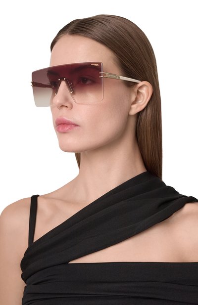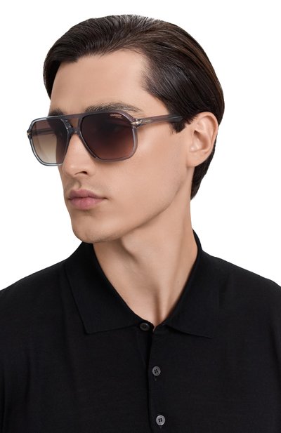 Солнцезащитные очки Carrera 3006/S с градиентной монолинзой из поликарбоната полностью блокируют УФ-лучи и не снижают цветовой контраст. Раздвоенные металлические дужки с ацетатными заушниками украшены вставкой с логотипом марки.