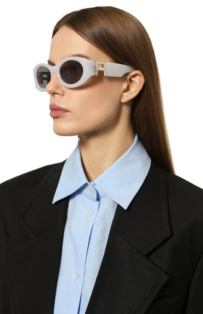 Солнцезащитные очки с зеркальными линзами не пропускают 100% УФ-излучения и не снижают цветовой контраст. Легкая оправа с фигурными брендированными дужками выполнена из прозрачного ацетата.