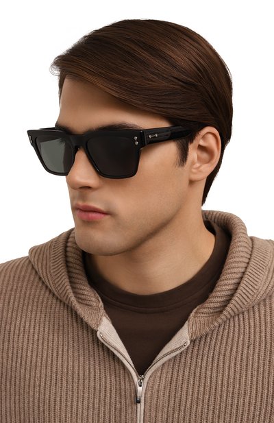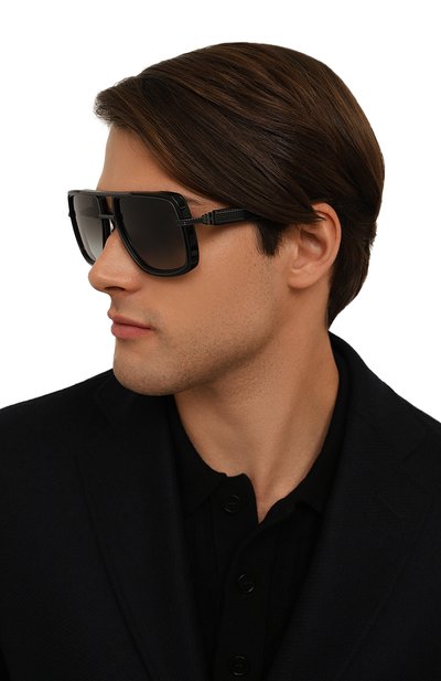 Для изготовления черных авиаторов использовали японский титан, поэтому они получились прочными и легкими. Индустриальный стиль модели добавили системой золотистых миниатюрных трубчатых винтов на узких дужках и двойном мосту, а также перфорированными накладками по бокам тонких ободов. Градиентные высококонтрастные линзы CR-39 с антибликовым покрытием не снижают цветопередачу.