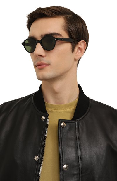 Очки 1391 с сильно затемненными линзами подойдут и мужчине, и женщине. Дизайн аксессуара со вставками Oyster и армированными дужками с заушниками, форма которых отсылает к легендарным гитарам Fender, вдохновлен архивными моделями 0692 и 0137. Изделие выполнили из цельного листа ацетата толщиной 10 мм.