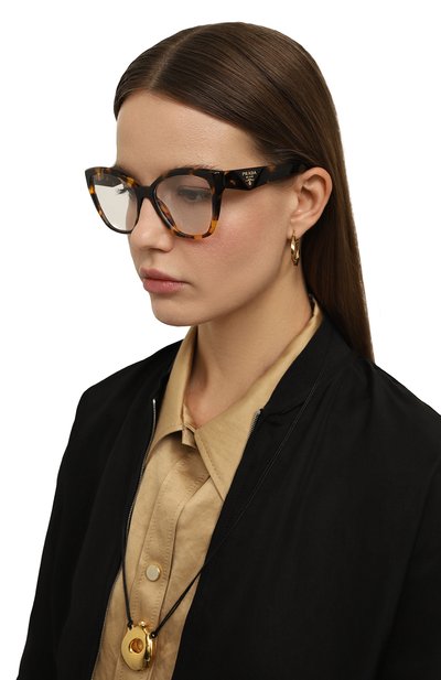 Оправу 9288 с ободами формы cat eye изготовили из глянцевого ацетата черепаховой расцветки. Плоские широкие дужки плавно переходят в заушники с волнообразным узором.