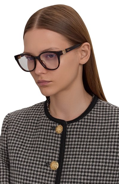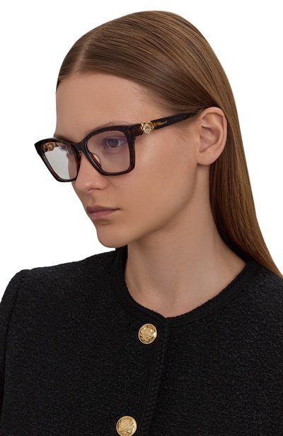 Оправу cat eye оттенка Dark Turtles выполнили из легкого ацетата. Для особой прочности модель 9241 использовали 5-цилиндровые петли. Роль декора играют миниатюрные заклепки в форме звезд.