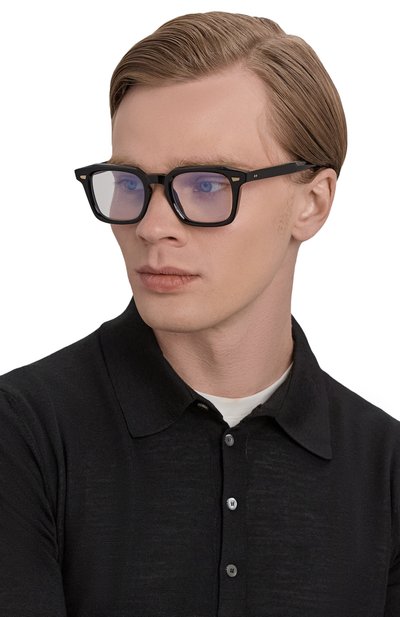 Оправу формы панто, вдохновленную творчеством Энди Уорхола 60-70-х годов, выполнили вручную из ацетата. Армированные дужки Deco core с креплениями Compass Star дополнили прозрачными вставками.