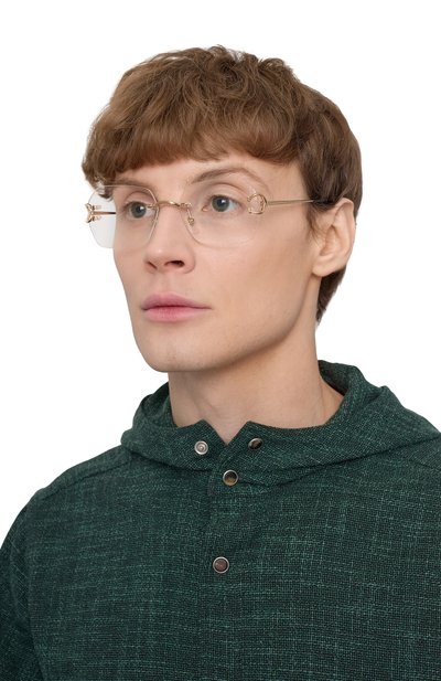 Широкую оправу Cosmo Rx с фиксированными носоупорами выполнили из прозрачного японского ацетата, укрепив дужки титановыми вставками. Аксессуар дополнили фирменными фигурными винтами.
