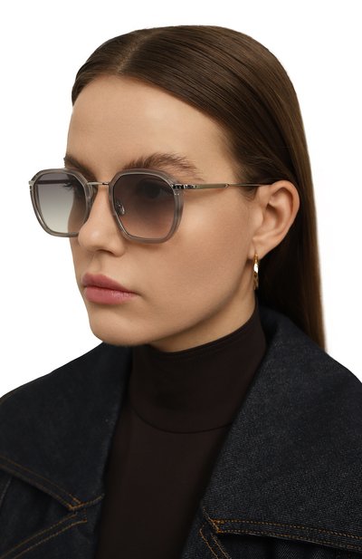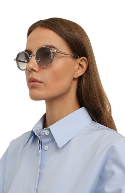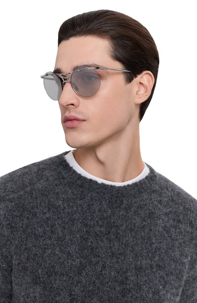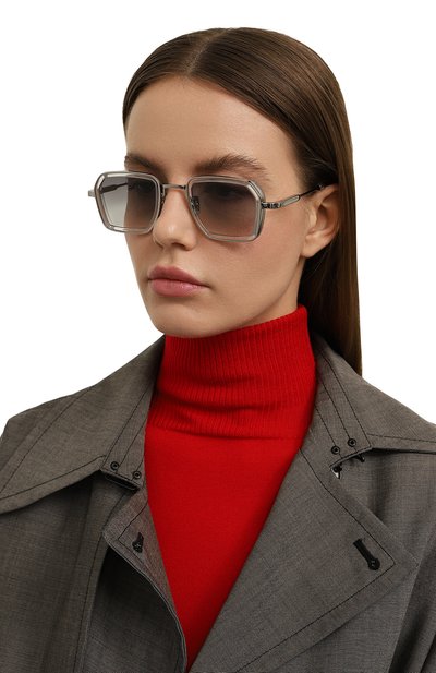Полуободковые солнцезащитные очки с двойным мостом и узкими дужками, представленные эксклюзивно в ЦУМе, выпустили ограниченным тиражом — 60 экземпляров по всему миру. Внутреннюю рамку и внешние накладки дополнили небольшими винтами. На заушниках аксессуара из металла предусмотрели петли.