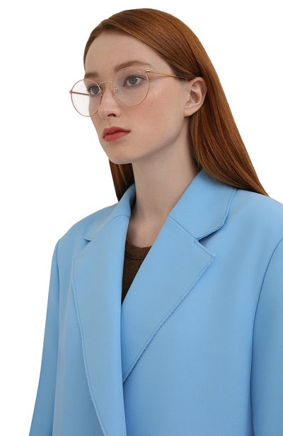Оправу очков с рамками в форме cat eye выполнили из легкого ацетата. Модель украсили вставкой с мотивом Double C de Cartier на дужках и логотипом на заушниках.