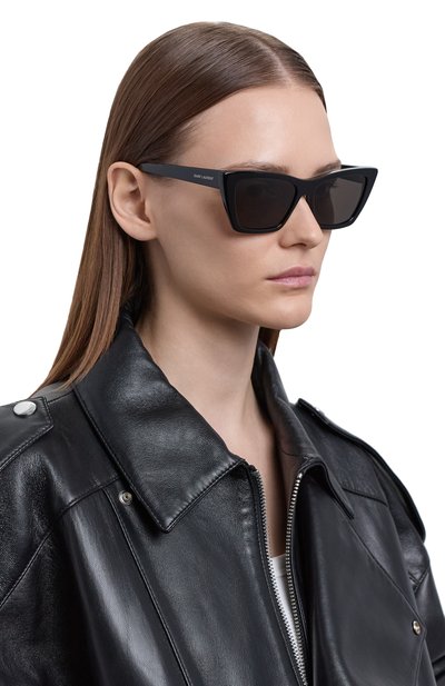 Очки Mica с прямоугольными линзами категории три пропускают не более 18% видимого света и полностью блокируют ультрафиолет. Аксессуар с оправой cat eye из вторичного ацетата украсили контрастным логотипом на дужках.