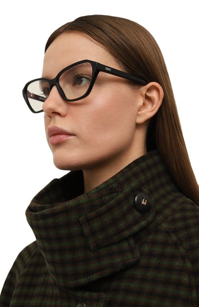 Оправу классической квадратной формы изготовили из легкого ацетата, поэтому она почти не ощущается на лице. Аксессуар с Т-образным креплением оснастили линзами с покрытием blue block, блокирующим лучи синего спектра.