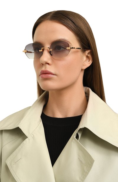 Очки Samuel 2 с подвижными носоупорами подойдут и женщинам, и мужчинам. Для изготовления модели с заушниками из черепахового ацетата использовали титан с покрытием 22-каратным желтым золотом. Градиентные антибликовые линзы обеспечивают 100% защиты от УФ-лучей.