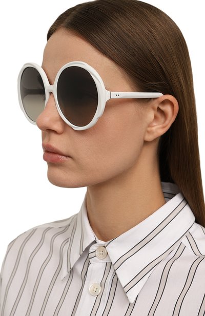 Солнцезащитные очки Lyra с градиентными линзами и фиксированными носоупорами выполнили из ацетата. Широкие дужки модели украсили вставками с микроузором.