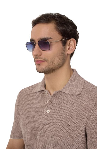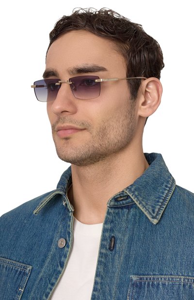Тонкую оправу квадратных очков Studio с подвижными носоупорами и заушниками из прозрачного ацетата выполнили из нержавеющей стали с золотистым финишем. Однотонные линзы с антибликовым покрытием обеспечивают 100% защиты от ультрафиолетовых лучей.
