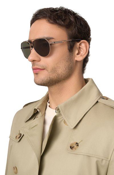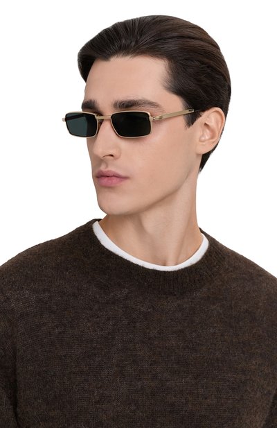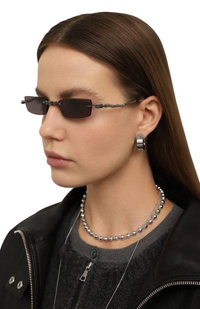 Солнцезащитные очки Z18 с затемненными линзами выполнили из металла. Волнистые дужки с ацетатными заушниками и прямоугольную рамку украсили рельефным узором.