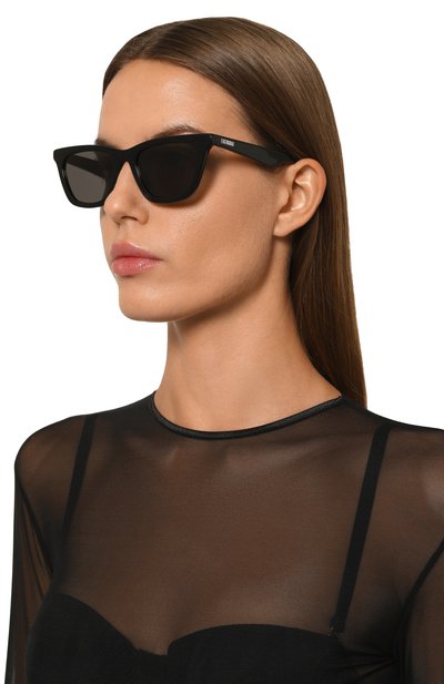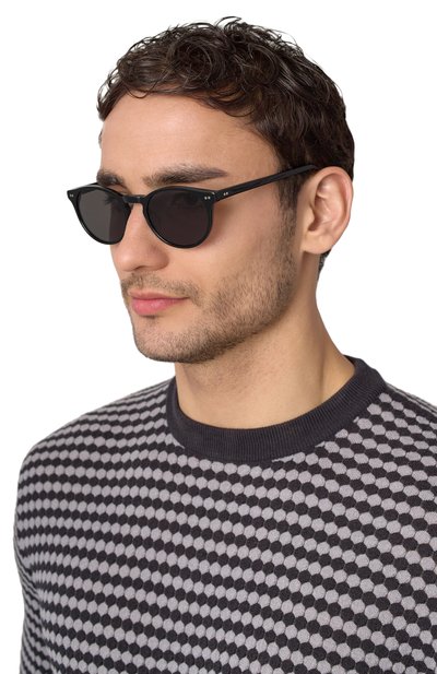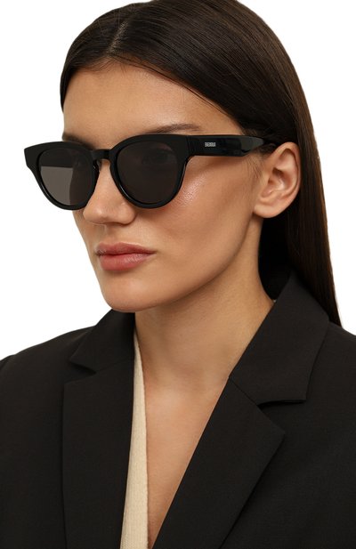 Оправу очков 700Hz выполнили из глянцевого ацетата. Аксессуар с темными линзами, полностью блокирующими ультрафиолет, украсили на дужках контрастными логотипами.