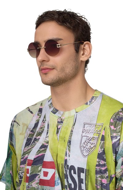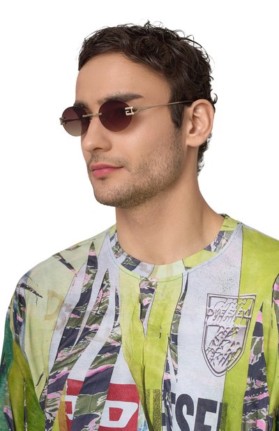 Тонкую оправу круглых очков 530 Hz с прозрачными подвижными носоупорами и черепаховыми заушниками выполнили из металла с финишем цвета античной бронзы. Однотонные линзы обеспечивают 100% защиты от ультрафиолетовых лучей.