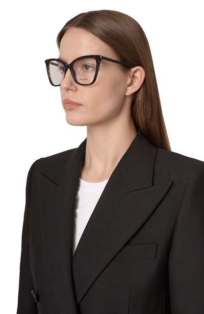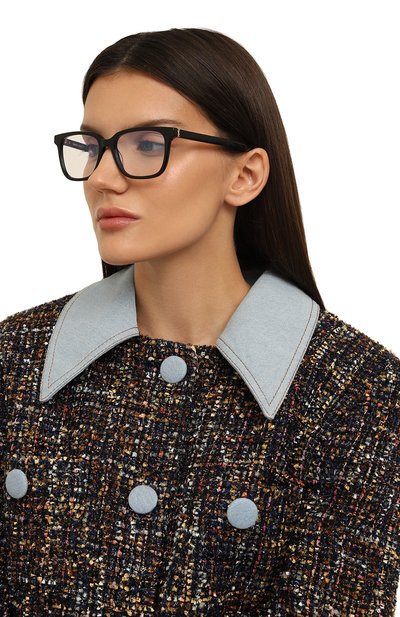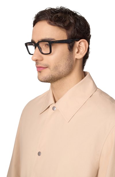 Оправу с литыми носоупорами выполнили из ацетата. Дужки модели с полосами в оттенках фирменной ленты Web украсили логотипом марки.