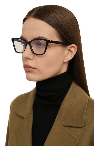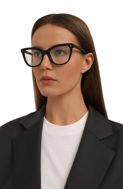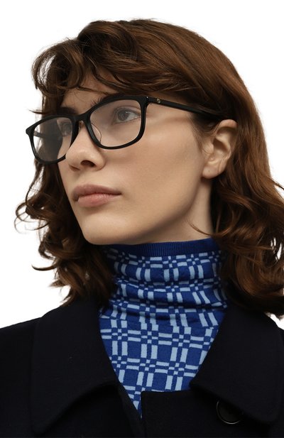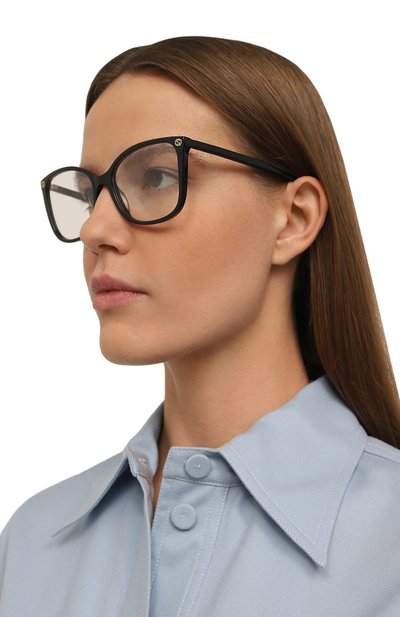 Прямоугольную оправу украсили логотипом на одной из линз. Аксессуар с миниатюрными эмблемами GG на дужках выполнен из глянцевого ацетата.