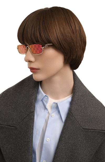Для создания очков с логотипом на узких дужках использовали металл с золотистым покрытием. Линзы Guccissima с зеркальным покрытием на 100% защищают глаза от UVA и UVB лучей.